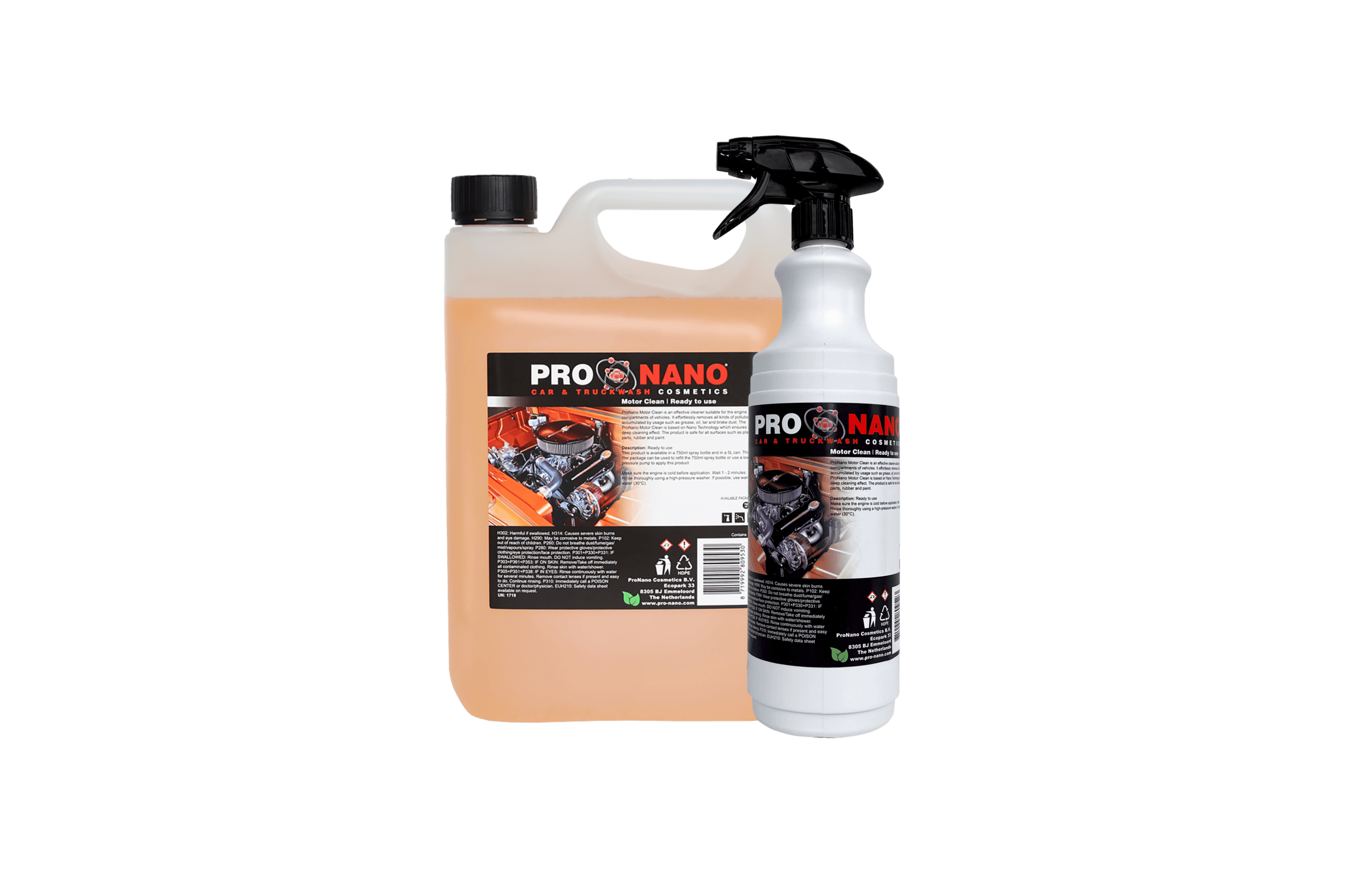ProNano Motor Clean is een krachtige motorreiniger die speciaal is ontwikkeld om motorblokken, motorruimtes en machineonderdelen veilig te reinigen. De formule verwijdert olie, vet, roet, brandstofresten en opgedroogd vuil.