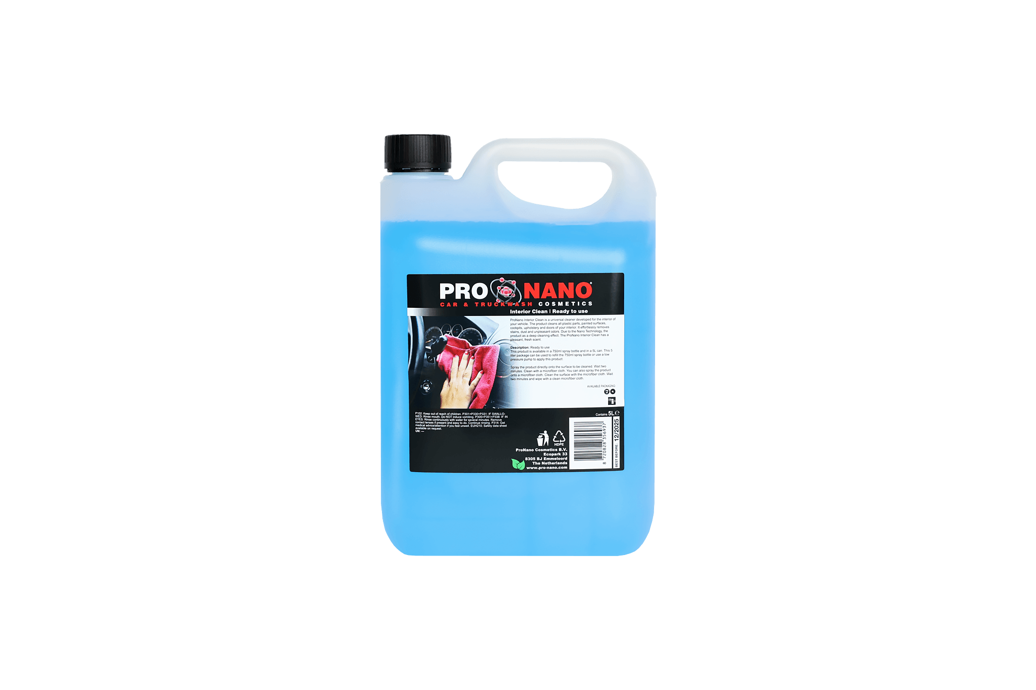 De 5 liter variant van ProNano Interior Clean is ideaal voor bedrijven die op grote schaal voertuigen reinigen, zoals poetsbedrijven, truckwash-locaties en wagenparken. Het product verwijdert effectief vet, stof, vlekken, nicotine en dagelijkse vervuiling uit interieurs.