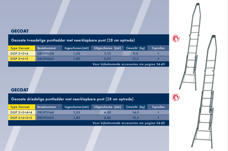 – Gecoate puntladders met een sportafstand van 28 cm