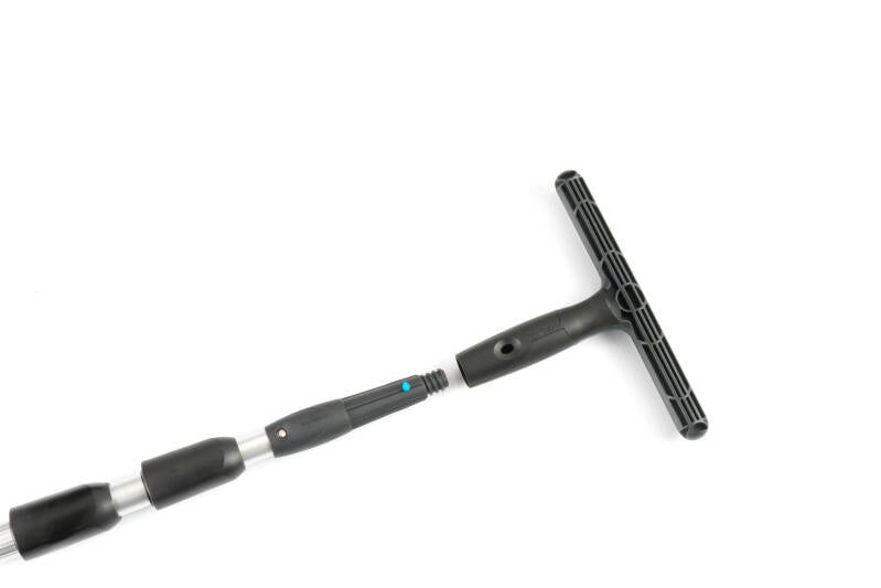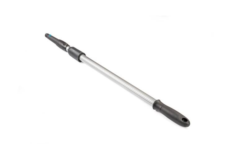 Door het tussenstuk los te draaien verleng je deze telescoopsteel in één keer. Ideaal voor ramen die gewassen moeten worden vanaf de grond tot maximum eerste verdieping. En perfect te combineren met de Moerman Excelerator 3.0 wissergreep.