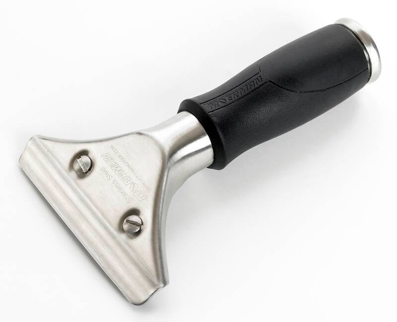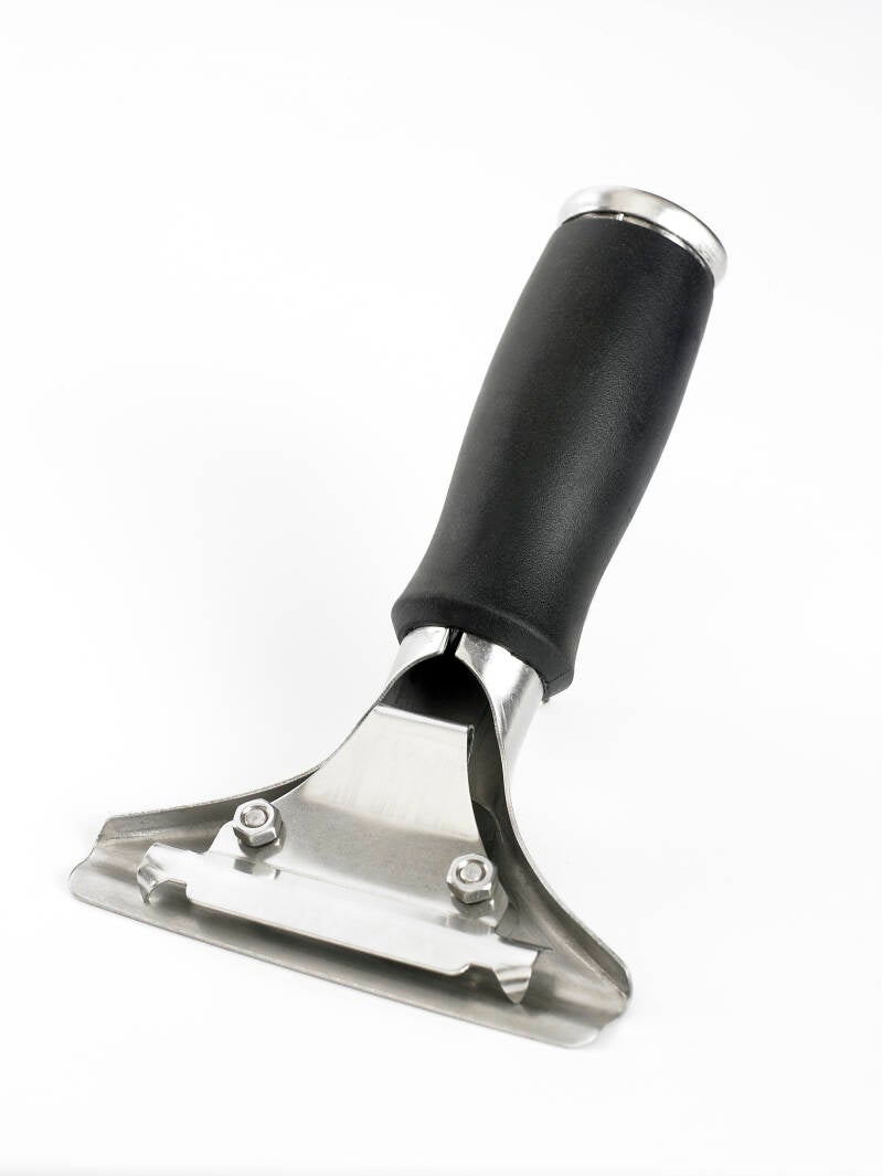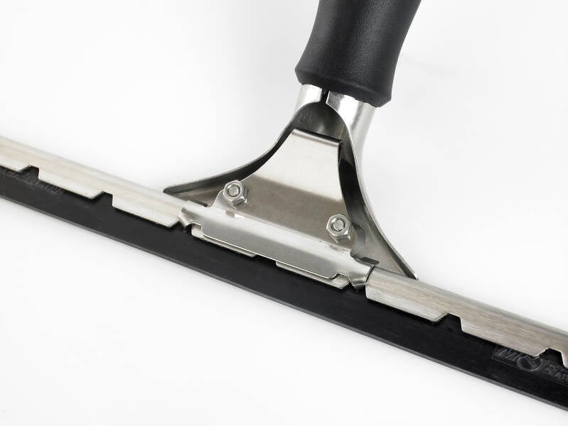 De Moerman RVS handgreep heeft een anti-slip greep voor goede grip, ook als deze nat is. De liniaal is gemakkelijk te bevestigen dankzij de ergonomische veerbediening. In de greep zit een bevestiging om de handgreep, in combinatie met de Moerman telescoopsteel, voor glasbewassing op hoogte te gebruiken.