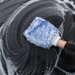 washandschoen microvezel zwart wit, zachte washmitt auto, microvezel handschoen detailing, auto wassen zonder krassen